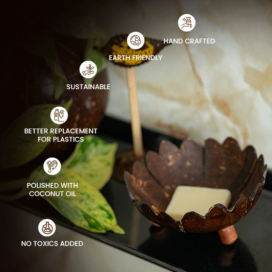 Natchu's Coconut Shell based Soap Tray Floweral...