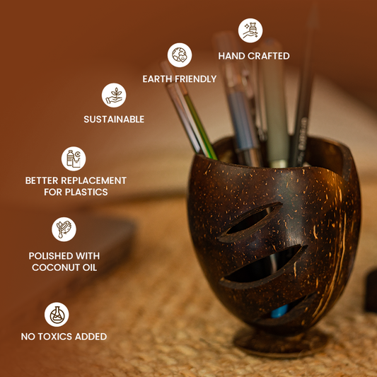 Natchu's Coconut Shell based Pen Stand (Set of 1)